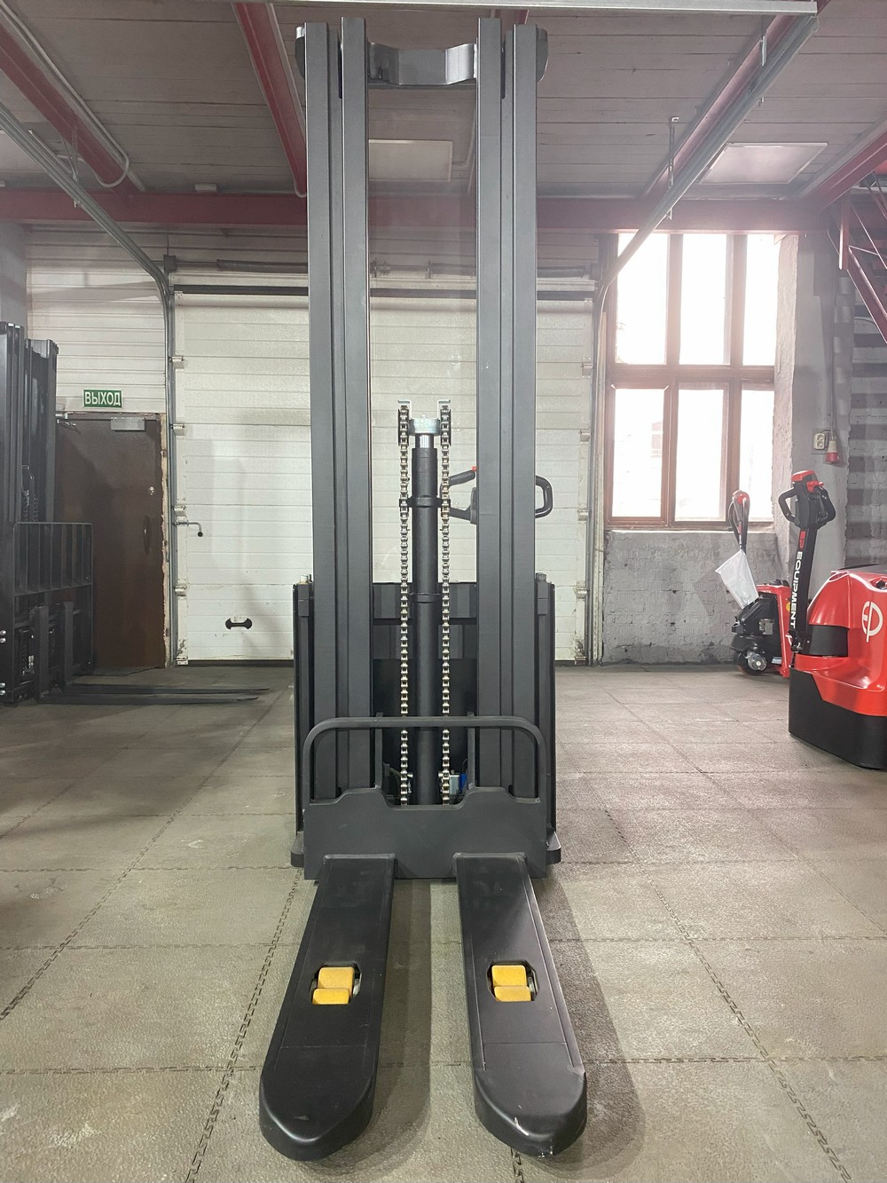 Высота подъема вил до 4500 мм. Система противоотката штабелера при работе на уклонах. Минимальный радиус разворота